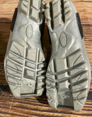 Boots are the most obviously distinctive family of nordic ski boots. They have a 75mm wide "duck bill" at the front of the boot, with three holes on the bottom of the bill that line up with the pins on their appropriate binding.