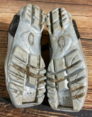 Boots are the most obviously distinctive family of nordic ski boots. They have a 75mm wide "duck bill" at the front of the boot, with three holes on the bottom of the bill that line up with the pins on their appropriate binding.