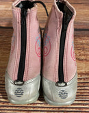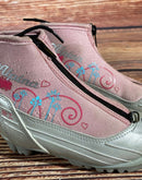 Boots are the most obviously distinctive family of nordic ski boots. They have a 75mm wide "duck bill" at the front of the boot, with three holes on the bottom of the bill that line up with the pins on their appropriate binding.