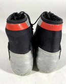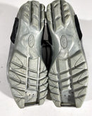 Boots are the most obviously distinctive family of nordic ski boots. They have a 75mm wide "duck bill" at the front of the boot, with three holes on the bottom of the bill that line up with the pins on their appropriate binding.