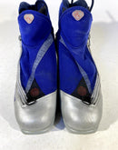 Boots are the most obviously distinctive family of nordic ski boots. They have a 75mm wide "duck bill" at the front of the boot, with three holes on the bottom of the bill that line up with the pins on their appropriate binding.