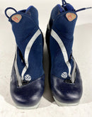 Boots are the most obviously distinctive family of nordic ski boots. They have a 75mm wide "duck bill" at the front of the boot, with three holes on the bottom of the bill that line up with the pins on their appropriate binding.