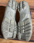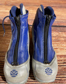 Boots are the most obviously distinctive family of nordic ski boots. They have a 75mm wide "duck bill" at the front of the boot, with three holes on the bottom of the bill that line up with the pins on their appropriate binding.