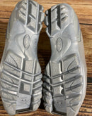 Boots are the most obviously distinctive family of nordic ski boots. They have a 75mm wide "duck bill" at the front of the boot, with three holes on the bottom of the bill that line up with the pins on their appropriate binding.