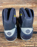 Boots are the most obviously distinctive family of nordic ski boots. They have a 75mm wide "duck bill" at the front of the boot, with three holes on the bottom of the bill that line up with the pins on their appropriate binding.