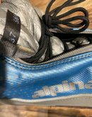 Boots are the most obviously distinctive family of Nordic ski boots. They have a 75mm wide "duck bill" at the front of the boot, with three holes on the bottom of the bill that line up with the pins on their appropriate binding.