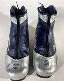 Boots are the most obviously distinctive family of nordic ski boots. They have a 75mm wide "duck bill" at the front of the boot, with three holes on the bottom of the bill that line up with the pins on their appropriate binding.