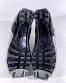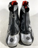 Boots are the most obviously distinctive family of nordic ski boots. They have a 75mm wide "duck bill" at the front of the boot, with three holes on the bottom of the bill that line up with the pins on their appropriate binding.