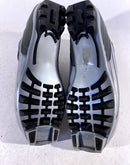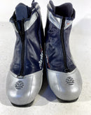 Boots are the most obviously distinctive family of nordic ski boots. They have a 75mm wide "duck bill" at the front of the boot, with three holes on the bottom of the bill that line up with the pins on their appropriate binding.