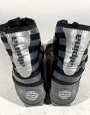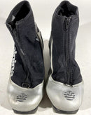 Boots are the most obviously distinctive family of nordic ski boots. They have a 75mm wide "duck bill" at the front of the boot, with three holes on the bottom of the bill that line up with the pins on their appropriate binding.