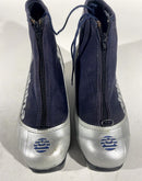 Boots are the most obviously distinctive family of nordic ski boots. They have a 75mm wide "duck bill" at the front of the boot, with three holes on the bottom of the bill that line up with the pins on their appropriate binding.