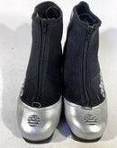Boots are the most obviously distinctive family of nordic ski boots. They have a 75mm wide "duck bill" at the front of the boot, with three holes on the bottom of the bill that line up with the pins on their appropriate binding.