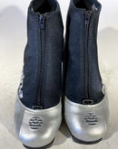 Boots are the most obviously distinctive family of nordic ski boots. They have a 75mm wide "duck bill" at the front of the boot, with three holes on the bottom of the bill that line up with the pins on their appropriate binding.