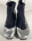 Boots are the most obviously distinctive family of nordic ski boots. They have a 75mm wide "duck bill" at the front of the boot, with three holes on the bottom of the bill that line up with the pins on their appropriate binding.