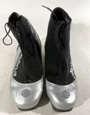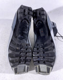 Boots are the most obviously distinctive family of nordic ski boots. They have a 75mm wide "duck bill" at the front of the boot, with three holes on the bottom of the bill that line up with the pins on their appropriate binding.