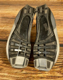 Boots are the most obviously distinctive family of nordic ski boots. They have a 75mm wide "duck bill" at the front of the boot, with three holes on the bottom of the bill that line up with the pins on their appropriate binding.