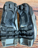 Boots are the most obviously distinctive family of nordic ski boots. They have a 75mm wide "duck bill" at the front of the boot, with three holes on the bottom of the bill that line up with the pins on their appropriate binding.