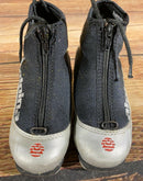 Boots are the most obviously distinctive family of nordic ski boots. They have a 75mm wide "duck bill" at the front of the boot, with three holes on the bottom of the bill that line up with the pins on their appropriate binding.