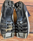 Boots are the most obviously distinctive family of nordic ski boots. They have a 75mm wide "duck bill" at the front of the boot, with three holes on the bottom of the bill that line up with the pins on their appropriate binding.