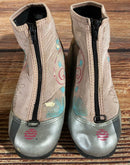 Boots are the most obviously distinctive family of nordic ski boots. They have a 75mm wide "duck bill" at the front of the boot, with three holes on the bottom of the bill that line up with the pins on their appropriate binding.