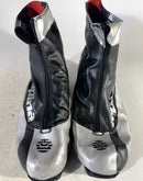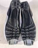 Boots are the most obviously distinctive family of nordic ski boots. They have a 75mm wide "duck bill" at the front of the boot, with three holes on the bottom of the bill that line up with the pins on their appropriate binding.