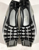 Boots are the most obviously distinctive family of nordic ski boots. They have a 75mm wide "duck bill" at the front of the boot, with three holes on the bottom of the bill that line up with the pins on their appropriate binding.