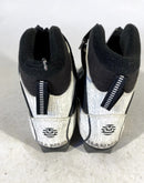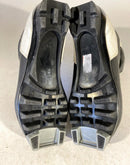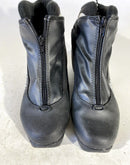 Boots are the most obviously distinctive family of nordic ski boots. They have a 75mm wide "duck bill" at the front of the boot, with three holes on the bottom of the bill that line up with the pins on their appropriate binding.