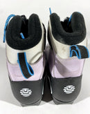 Boots are the most obviously distinctive family of nordic ski boots. They have a 75mm wide "duck bill" at the front of the boot, with three holes on the bottom of the bill that line up with the pins on their appropriate binding.