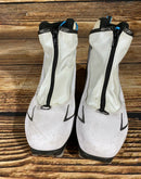 Boots are the most obviously distinctive family of nordic ski boots. They have a 75mm wide "duck bill" at the front of the boot, with three holes on the bottom of the bill that line up with the pins on their appropriate binding.