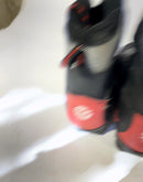 Boots are the most obviously distinctive family of nordic ski boots. They have a 75mm wide "duck bill" at the front of the boot, with three holes on the bottom of the bill that line up with the pins on their appropriate binding.