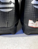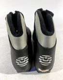 Boots are the most obviously distinctive family of nordic ski boots. They have a 75mm wide "duck bill" at the front of the boot, with three holes on the bottom of the bill that line up with the pins on their appropriate binding.