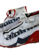 Boots are the most obviously distinctive family of nordic ski boots. They have a 75mm wide "duck bill" at the front of the boot, with three holes on the bottom of the bill that line up with the pins on their appropriate binding.