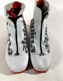 Boots are the most obviously distinctive family of nordic ski boots. They have a 75mm wide "duck bill" at the front of the boot, with three holes on the bottom of the bill that line up with the pins on their appropriate binding.