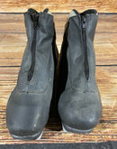 Boots are the most obviously distinctive family of Nordic ski boots. They have a 75mm wide "duck bill" at the front of the boot, with three holes on the bottom of the bill that line up with the pins on their appropriate binding.