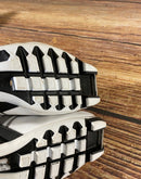 Boots are the most obviously distinctive family of nordic ski boots. They have a 75mm wide "duck bill" at the front of the boot, with three holes on the bottom of the bill that line up with the pins on their appropriate binding.