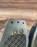 Boots are the most obviously distinctive family of nordic ski boots. They have a 75mm wide "duck bill" at the front of the boot, with three holes on the bottom of the bill that line up with the pins on their appropriate binding.