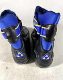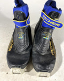 Boots are the most obviously distinctive family of nordic ski boots. They have a 75mm wide "duck bill" at the front of the boot, with three holes on the bottom of the bill that line up with the pins on their appropriate binding.