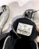Boots are the most obviously distinctive family of nordic ski boots. They have a 75mm wide "duck bill" at the front of the boot, with three holes on the bottom of the bill that line up with the pins on their appropriate binding.
