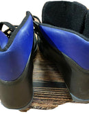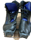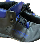Boots are the most obviously distinctive family of nordic ski boots. They have a 75mm wide "duck bill" at the front of the boot, with three holes on the bottom of the bill that line up with the pins on their appropriate binding.