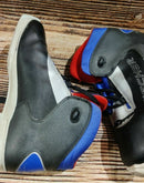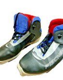 Boots are the most obviously distinctive family of nordic ski boots. They have a 75mm wide "duck bill" at the front of the boot, with three holes on the bottom of the bill that line up with the pins on their appropriate binding.