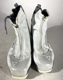Boots are the most obviously distinctive family of nordic ski boots. They have a 75mm wide "duck bill" at the front of the boot, with three holes on the bottom of the bill that line up with the pins on their appropriate binding.