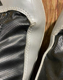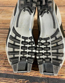 Boots are the most obviously distinctive family of Nordic ski boots. They have a 75mm wide "duck bill" at the front of the boot, with three holes on the bottom of the bill that line up with the pins on their appropriate binding.