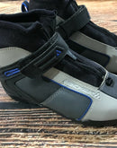 Boots are the most obviously distinctive family of nordic ski boots. They have a 75mm wide "duck bill" at the front of the boot, with three holes on the bottom of the bill that line up with the pins on their appropriate binding.