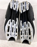 Boots are the most obviously distinctive family of nordic ski boots. They have a 75mm wide "duck bill" at the front of the boot, with three holes on the bottom of the bill that line up with the pins on their appropriate binding.