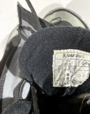 Boots are the most obviously distinctive family of nordic ski boots. They have a 75mm wide "duck bill" at the front of the boot, with three holes on the bottom of the bill that line up with the pins on their appropriate binding.