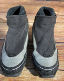 Boots are the most obviously distinctive family of nordic ski boots. They have a 75mm wide "duck bill" at the front of the boot, with three holes on the bottom of the bill that line up with the pins on their appropriate binding.