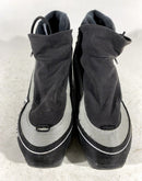 Boots are the most obviously distinctive family of nordic ski boots. They have a 75mm wide "duck bill" at the front of the boot, with three holes on the bottom of the bill that line up with the pins on their appropriate binding.