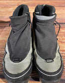 Boots are the most obviously distinctive family of nordic ski boots. They have a 75mm wide "duck bill" at the front of the boot, with three holes on the bottom of the bill that line up with the pins on their appropriate binding.