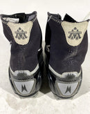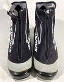Boots are the most obviously distinctive family of nordic ski boots. They have a 75mm wide "duck bill" at the front of the boot, with three holes on the bottom of the bill that line up with the pins on their appropriate binding.