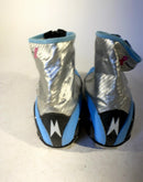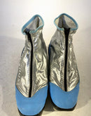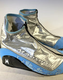 Boots are the most obviously distinctive family of nordic ski boots. They have a 75mm wide "duck bill" at the front of the boot, with three holes on the bottom of the bill that line up with the pins on their appropriate binding.